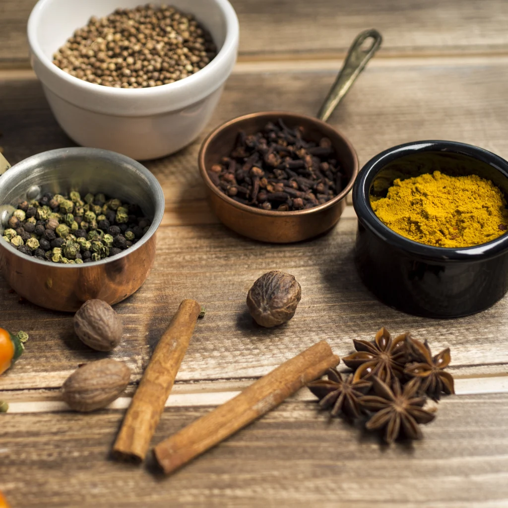 - Dried spices: turmeric (curcumin), cumin, cinnamon, paprika